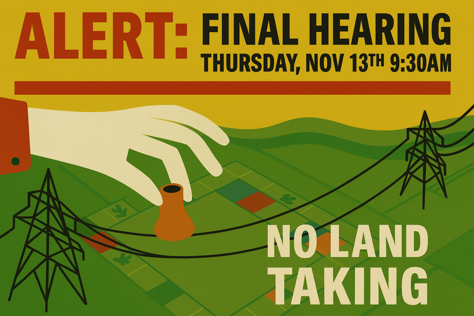 This Thursday, November 13, 2025, at 9:30 a.m., the OPUC will hold the final hearing to decide whether to rescind and revoke the utilities’ authority to condemn land for the construction of the B2H line.
