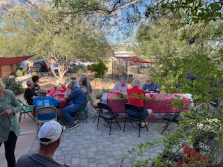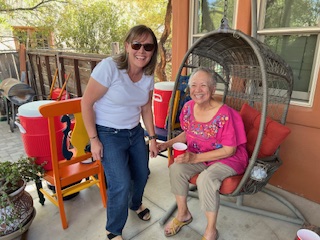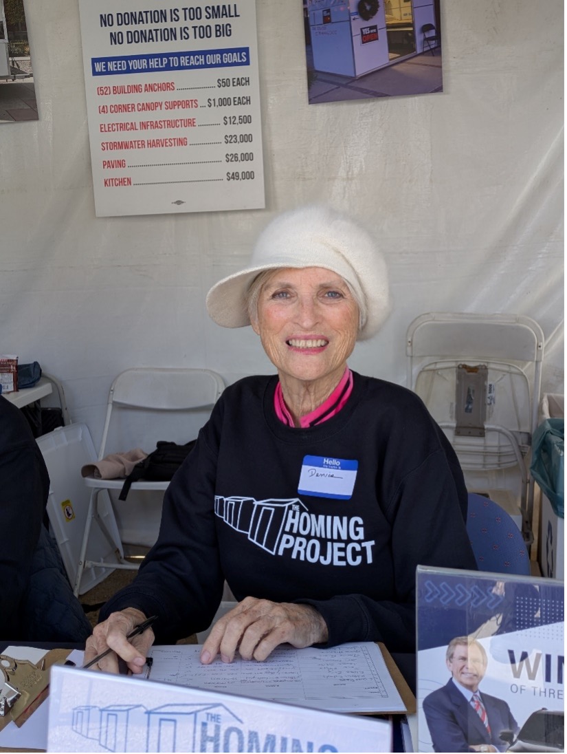 | | | | Rita Gray catered the event! | | Stephanie and Angie enjoying the BBQ. | | | | | | | | Denice Blake, Arizona Gives Day matching grant donor for THP Profile by Joan Hall The Homing Project interviewed Denice Blake, our matching grant donor for the recent Arizona Gives Day, at her lovely home in the historic Sam Hughes Neighborhood. We wanted to find out what led her to us. Denice told us that she had first heard about THP at the end of last year (2024) in an article in the Desert Leaf Magazine, and then subsequently in another publication. While this was not the proverbial “three times is a charm”, she was sufficiently intrigued by the concept to investigate further. First on her mind, like all savvy investors, was to make sure that THP wasn’t a scam. So she signed up for the newsletter to get more information, and then convinced of our legitimacy, went ahead and made a very generous donation of $2,000. Soon thereafter, Denice found out about the monthly volunteer meetings at St. Phillips Episcopal Church at River and Campbell. After attending one she felt more comfortable making a larger commitment. She liked the enthusiasm and commitment of the other volunteers, as well as their altruism – doing something that doesn’t benefit them personally. Denice then signed up to volunteer to show the micro-shelters at The Tucson Mall on Christmas Eve – how’s that for commitment! She was there with our CEO and Founder Kris Olsen-Garewal, and had a chance to learn more about THP, right from the source. From this time together, and a further meeting at Kris’ house, she came to respect Kris, from her openness about the challenges facing the project to her resolve to seeing the village flourish. Denice is a supporter of other nonprofits that also reflect her values, placiung a high priority on education, the arts, and helping the disadvantaged. She and her husband use their required minimum distributions[1] from their individual retirement accounts (IRA) to support local theaters, The Loft, Tucson Botanical Garden and Youth on Their Own (YOTO), where she also volunteers. This year, YOTO surprised her with their "Philanthropist of the Year" award, which she felt honored to receive, and yet a little undeserving. Denice is too modest! She has volunteered there for over ten years and has served in all the different volunteer roles that they have. Clearly her contributions are greatly appreciated. Denice lives near Himmel Park, and like most Tucsonans, has seen how homeless people, having no private spaces of their own, use our public spaces. The Himmel Park public library is also used by them. Seeing this has made her realize that Tucson needs more projects focused on serving unhoused people. One of the things that attracted her to THP was the knowledge that we will be providing workshops to the residents of the villages to help them learn or refresh skills. Another is the fact that we are an all-volunteer organization, with no staff overhead. She likes that her funds go to efficient and financially well-run organizations. Denice also volunteered at the recent Book Fest on the UA Mall. She got the sense from that experience that many people are really tuned in to the homeless situation and she thinks this is important, since the federal government will be less and less likely to make contributions to the problem. She also learned some new volunteer skills: “I also learned that to get people's attention, I can't just sit behind a table and wait for inquiries. Kris, the THP CEO, and Arnie (a longtime THP volunteer) are not shy about approaching people.” Recently Denice provided a matching grant of $5,000 for THP’s Arizona Gives Day (April 1, but donations can be accepted all year long). She’s very interested in following how THP's first village does [editor’s note: This is Tucson’s first village of transitional housing for the homeless.]. It's very ambitious, and even though it won't serve a large group at the beginning, if it works, it will be a real model for future attempts. What would you say to other people who might be interested in supporting The Homeless Project? “This is a committed, selfless, but also fun group to work with. And there will be lots of opportunities to pick and choose what to work on. I took some THP brochures to pass out to my two book clubs. More people need to hear about this impressive organization.” Thanks for all you do for THP, Denice!