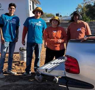 Kris and Corey reviewed the plans for the village layout. | | The de la Cruz family showed up to work on erecting the micro-shelters. | | | | | | | | Angie, Alice and Jeff at the erection of the micro-shelters. | | John Blackwell and his hard working golfing buddies at lunch break. | | | | | |
